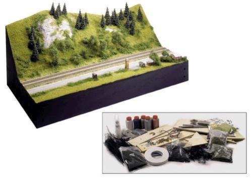 Materiaal voor het bouwen van landschap op een lay-out met een oppervlakte tot 215 x 60 cm / 85 "x 24" (hetzelfde gebied als voor het circuit lay-out van 11.109 of 11.110 met de T14301 spoor extensie set). Natuurlijk is deze kit kan ook worden gebruikt voor het decor voor lay-outs uit de kleinere startsets in de Minitrix-assortiment op te bouwen.