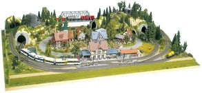 Een idylle in de beste modelbaan formaat biedt de afgewerkte terrein "Königsfeld". Het interessante begeleide spoorlijn loopt door een heuvelachtig landschap met vele attracties: een middeleeuwse stad met een kerk, een berg met een kasteel, een beek met een meer (geschikt voor stromend water), een oude bakstenen treinstation met goederenloods en last but not least, een tunnel en een goed gebogen brug. Als speciale attractie, kan een functionele Brawa Chairlift bovendien worden opgenomen. Twee spoor circuits en een zijspoor staan interessante spoorwegbedrijf.