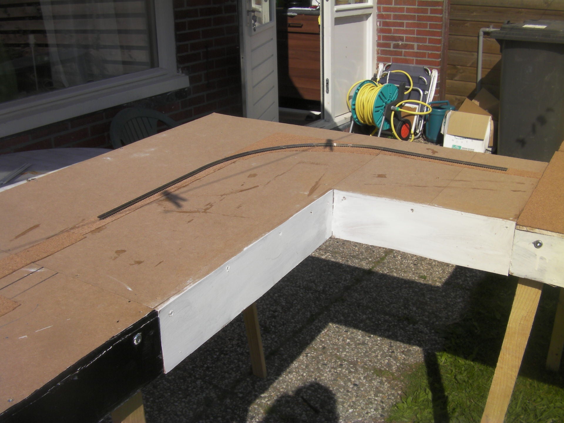 1 bak is de Fiddle yards 100X60 cm, 1 keerlus van 100X100 cm,en Hoekbak 96X98