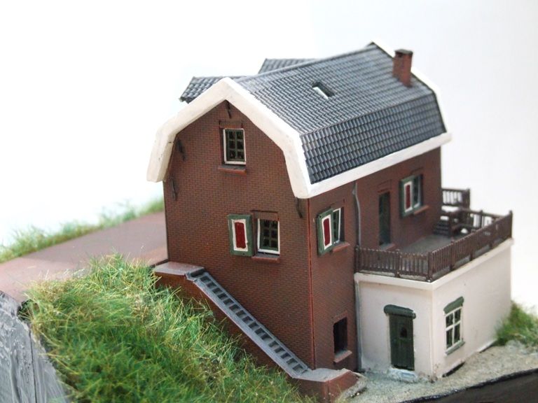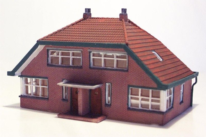 Woning met puntdak. Ook wel middenstandsvilla genoemd. Dit model past op iedere nederlandse modelbaan!