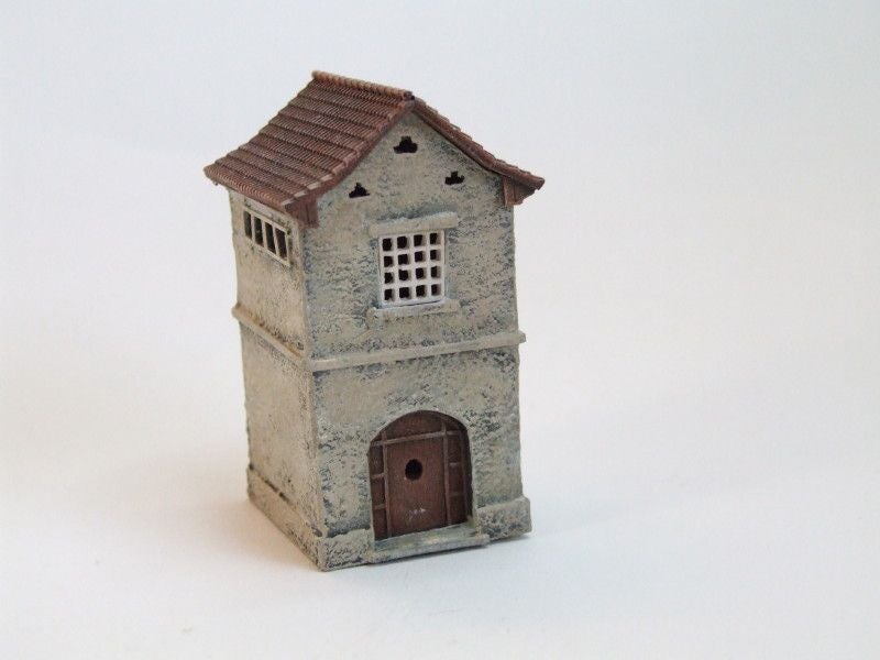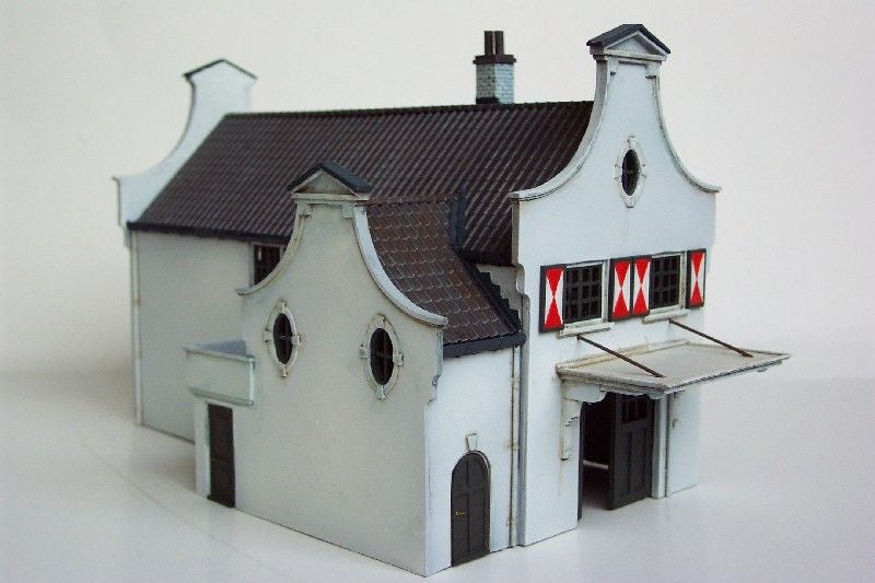 Ramen en deuren zijn apart gegoten wat het schilderen een stuk makkelijker maakt. Het dak is in één stuk gegoten. Afmetingen Diepte: 170 mm Breedte: 60 mm Hoogte: 65 mm