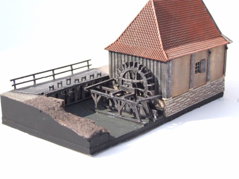 Deze molen bestaat nog steeds. Het gaat om een oliemolen met onderslag waterrad. Het model beschikt over een bodemplaat om in te bouwen op uw modelbaan. Verder is het dak in één stuk gegoten net als het huis.