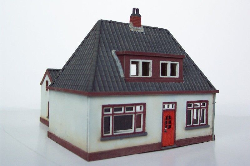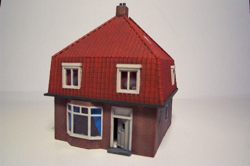 Typische woning uit de jaren 30 met hoge puntgevel en erker aan de voorzijde. Deze woningen zijn hier en daar nog in Nederland te vinden. Het model is ontworpen naar een idee van R. Timmermans.