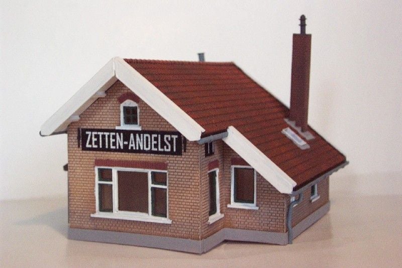 Station Zetten Andelst uit de Betuwe. Dit nog steeds bestaande station is momenteel niet meer in gebruik. Het kan op diverse manieren worden gebouwd. Onder nummer 87023 vindt u de bijbehorende baanwachterswoning.