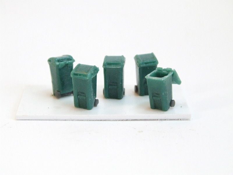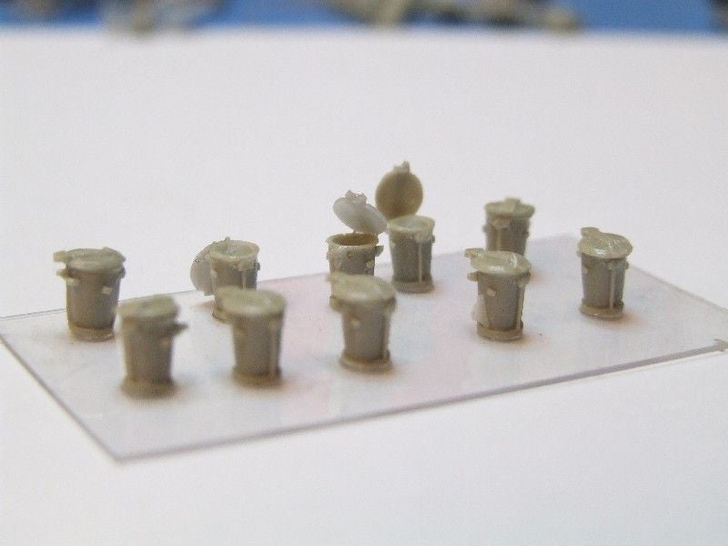 Set van 10 vuilnisemmers uit de jaren 70. Deze emmers hadden de naam van de gemeente of stad in de deksel gestanst. In veel tuyinen ziet u ze nog bv. als bloembak staan.