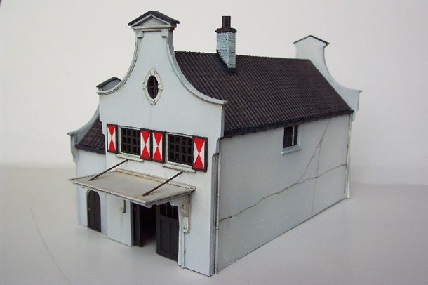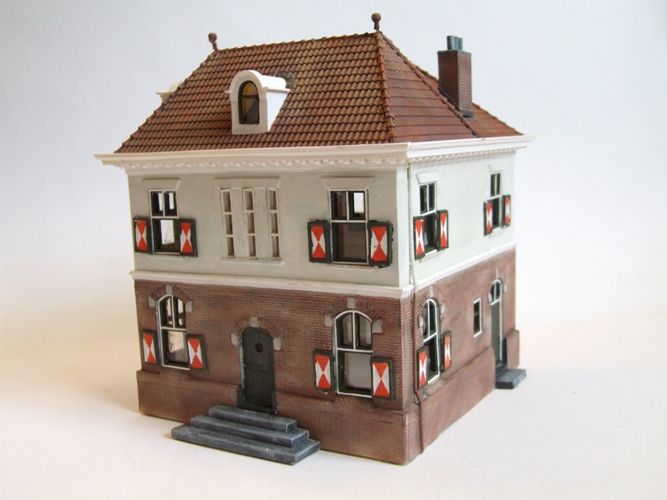 U kunt het model bouwen met aan de linker kant een trap of een houten bordes (zie foto's). De andere kant is voorzien van een stenen trap. Het dak is uit één stuk gegoten en alle ramen en deuren worden apart geleverd wat het schilderen een stuk makkelijker maakt.