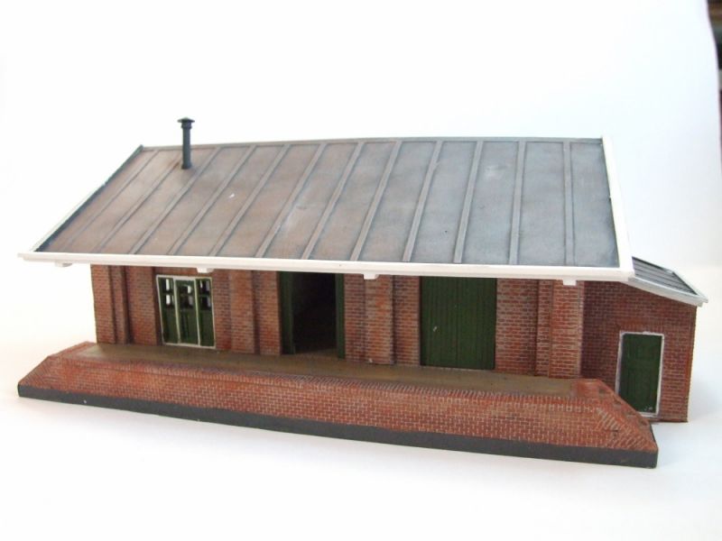 Deze kleine loods werd deels gebruikt als wisselwachterverblijf. Daarnaast is er een opslag voor brandstoffen. Het model heeft een binnenvloer en het dak is uit één stuk gegoten. Als de loods met nr. 87058 te groot is voor uw baan is dit wellicht een goed alternatief!